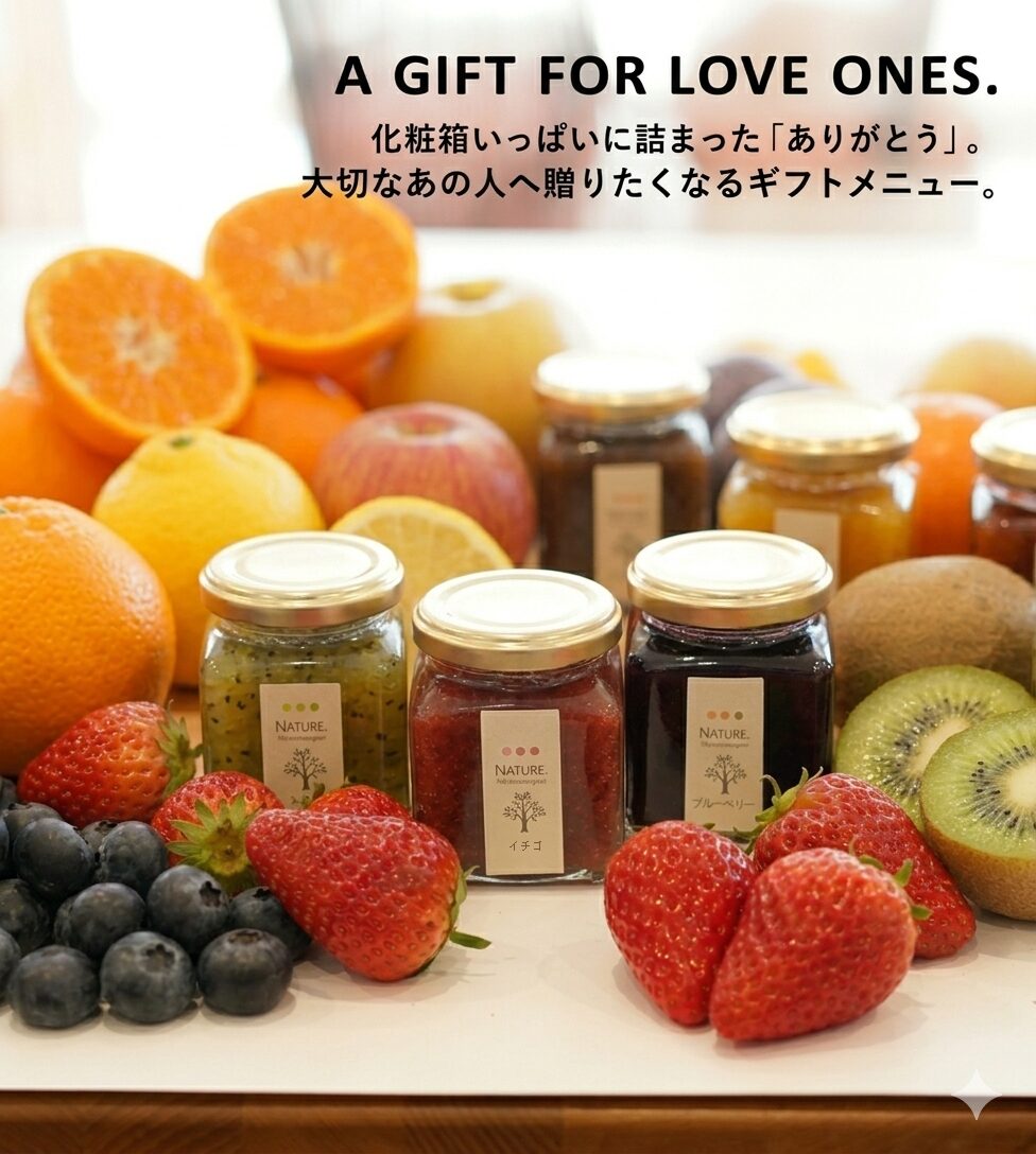 保存料・着色料のほか、ペクチンやレモン汁といった酸味料・ゲル化剤などの食品添加物不使用商品なので、お子様からお年寄りまで幅広い年代の方に安心してお召し上がりいただけます。