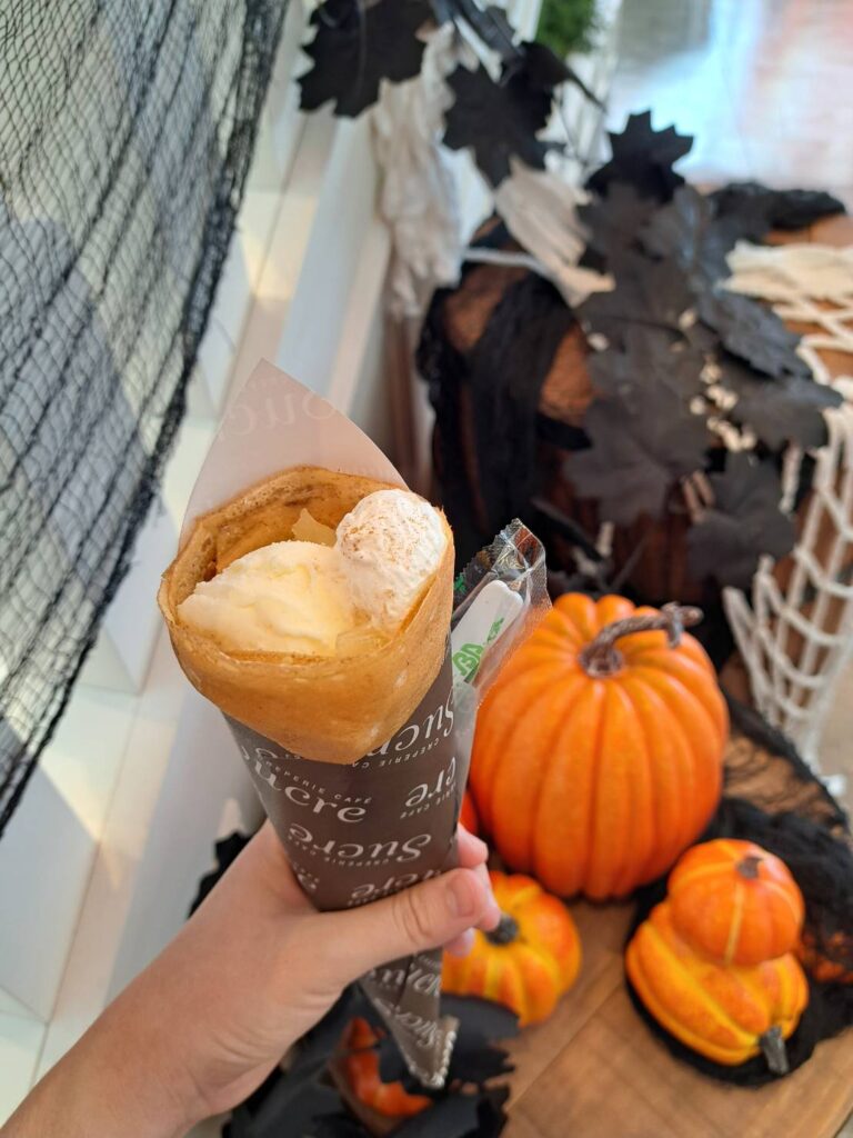 10月の訓練は津南です★ 2025.10.20 はるブログ お昼は魁力屋のラーメンとクレープリーカフェシュクレのアップルシナモンアイスクレープをいただきました その後キャラクターグッズ店やゲームセンターや本屋によりました☆ クロミちゃんのコラボをしている店がありました楽しかったです